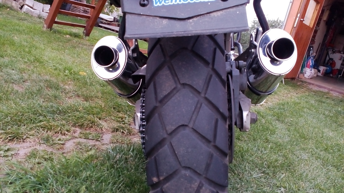 Jj koncovky jsou z 900.Strašně se mi líbí 2 laufy.Rozdvojení jsem si tvořil sám.Zvuk ůžasný a maj i homologační vložku.Takže jsem lítal po Rakousku s čistým svědomím. Tady videjko jak jsem měřil na brzdě. http://www.youtube.com/watch?v=rMpezUQEtg0 8)